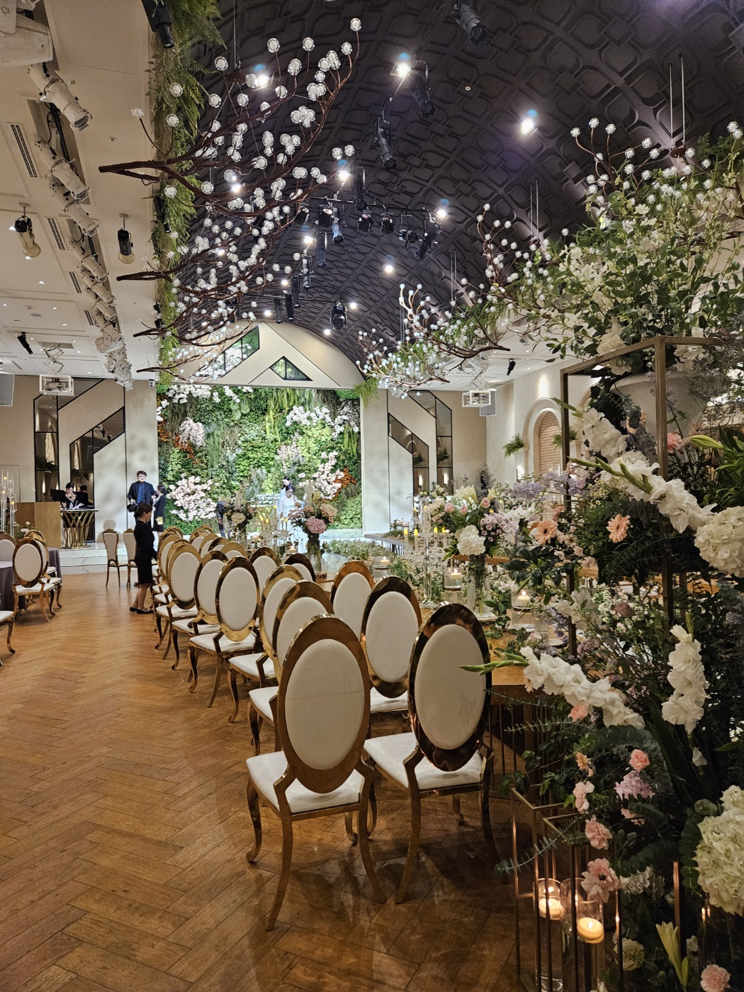• 정원에 온듯한 느낌. 웨딩홀 맨 앞이 열리면서 풀숲이 나왔어요. 작은 정원느낌.